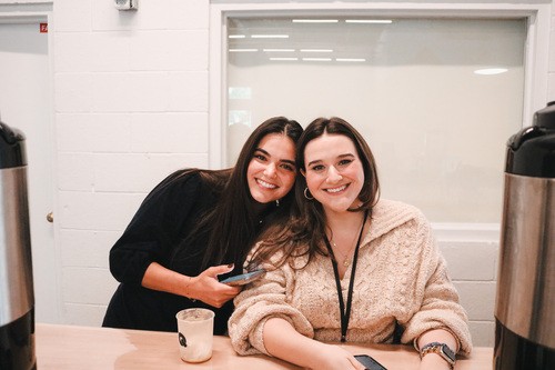 When you walk in, you’ll be greeted at the front doors by one of our volunteers who’d love to meet you and answer any questions you have. They’ll also point you to where you can grab a free cup of Verve Coffee and a donut, where you can check in your kids (if you have them), and help you find a comfortable seat so you can settle in and enjoy the service.